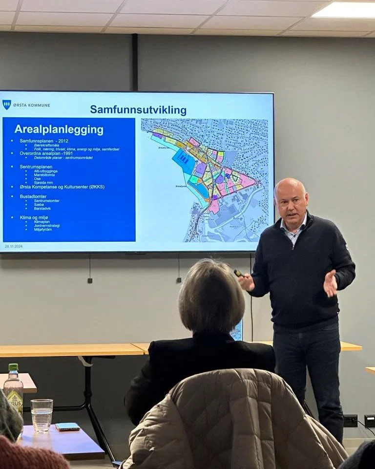 Ordførar Per Are Sørheim fekk så ordet og hadde ein fyldig og god presentasjon om kva utfordringar kommunen står overfor både når det gjeld økonomi og demografi. Han var likevel klar på at det vert jobba godt og strategisk for å legge til rette for næringsutvikling, areal for næring og bustadtomter og for å sikre bedre samferdsel. Omstilling er krevande og dette la han ikkje skjul på .