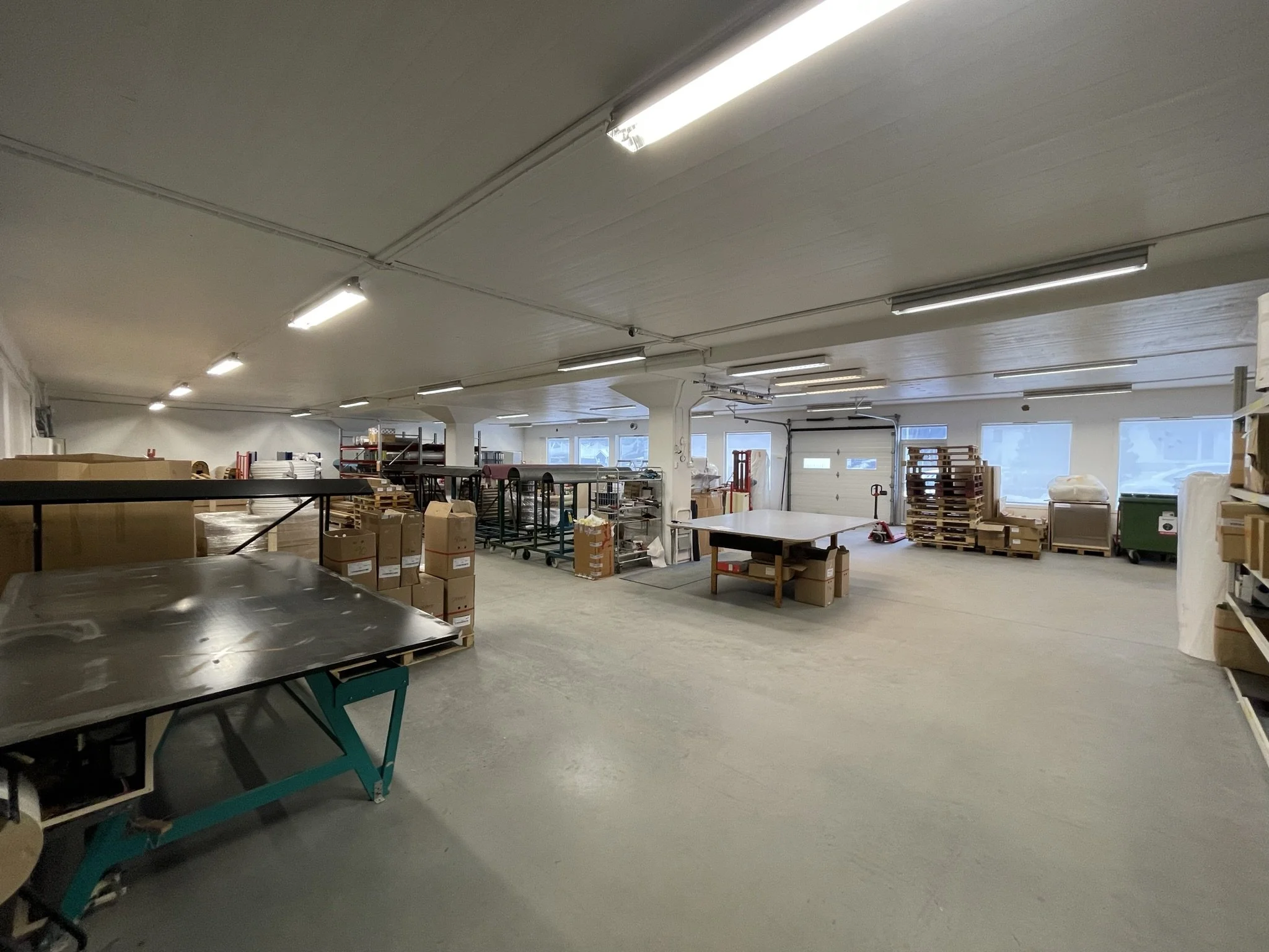 Lagerlokalet på grunnplan er om lag 1000 m², fordelt på 2 hallar med takhøgde 3 og 5 m. Høghallen er utleigd til ut på hausten.